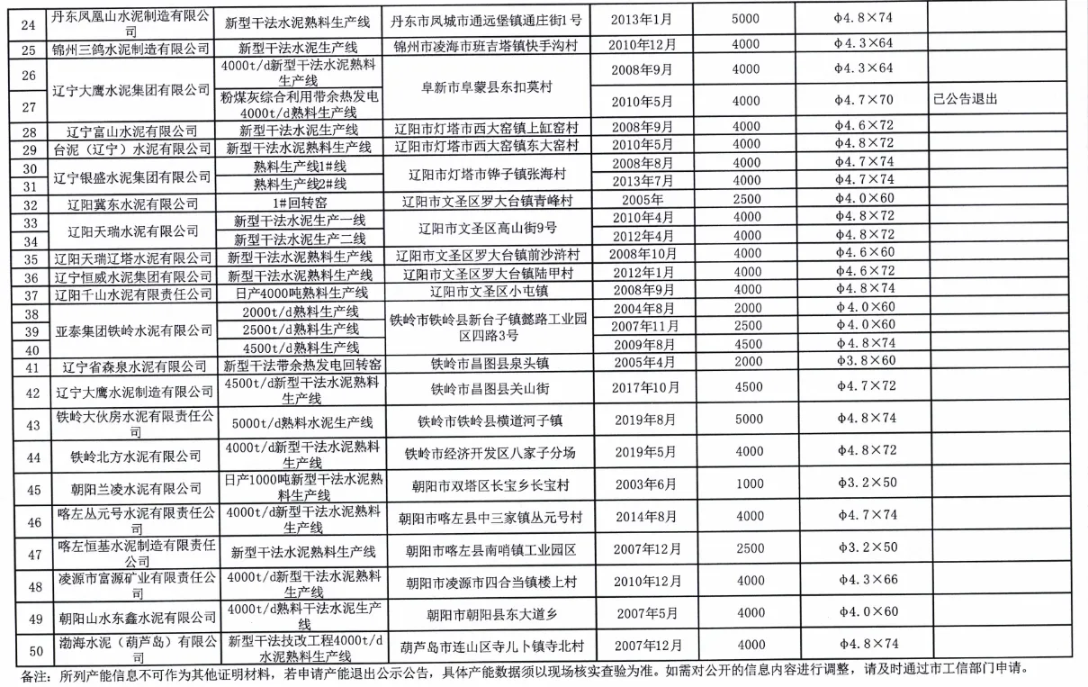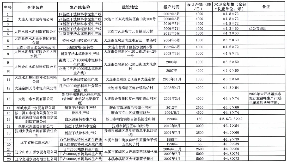 根遼寧省工信廳發(fā)布的《遼寧省水泥熟料生產(chǎn)線(xiàn)清單》,截至到2023年12月31日,遼寧省共有39家水泥廠50條水泥熟料生產(chǎn)線(xiàn)。
