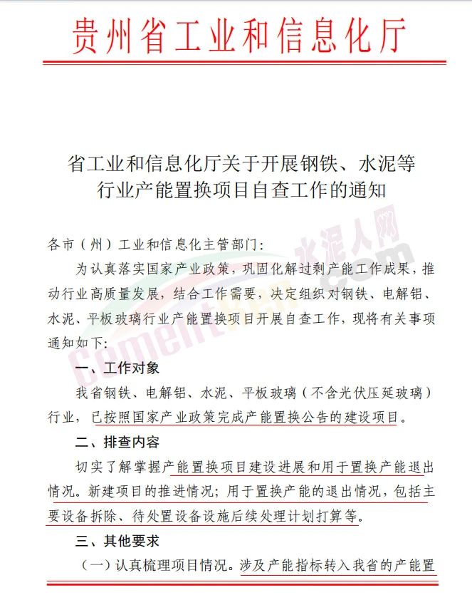 貴州省工信廳同期發(fā)布《關于開展鋼鐵、水泥等行業(yè)產能置換項目自查工作的通知》稱,為認真落實國家產業(yè)政策,鞏固化解過剩產能工作成果,推動行業(yè)高質量發(fā)展,結合工作需要,決定組織對鋼鐵、電解鋁、水泥、平板玻璃行業(yè)產能置換項目開展自查工作。