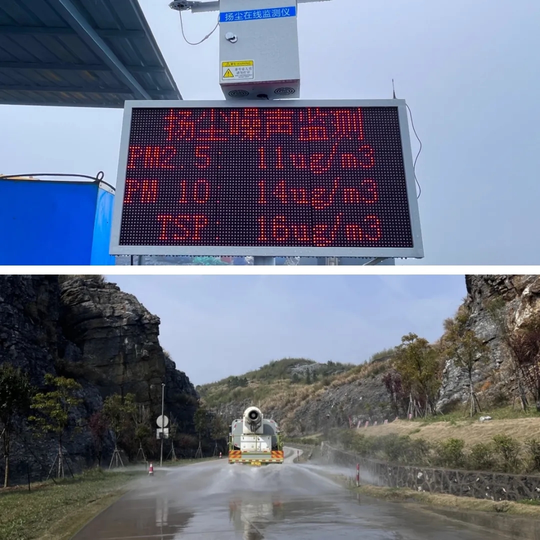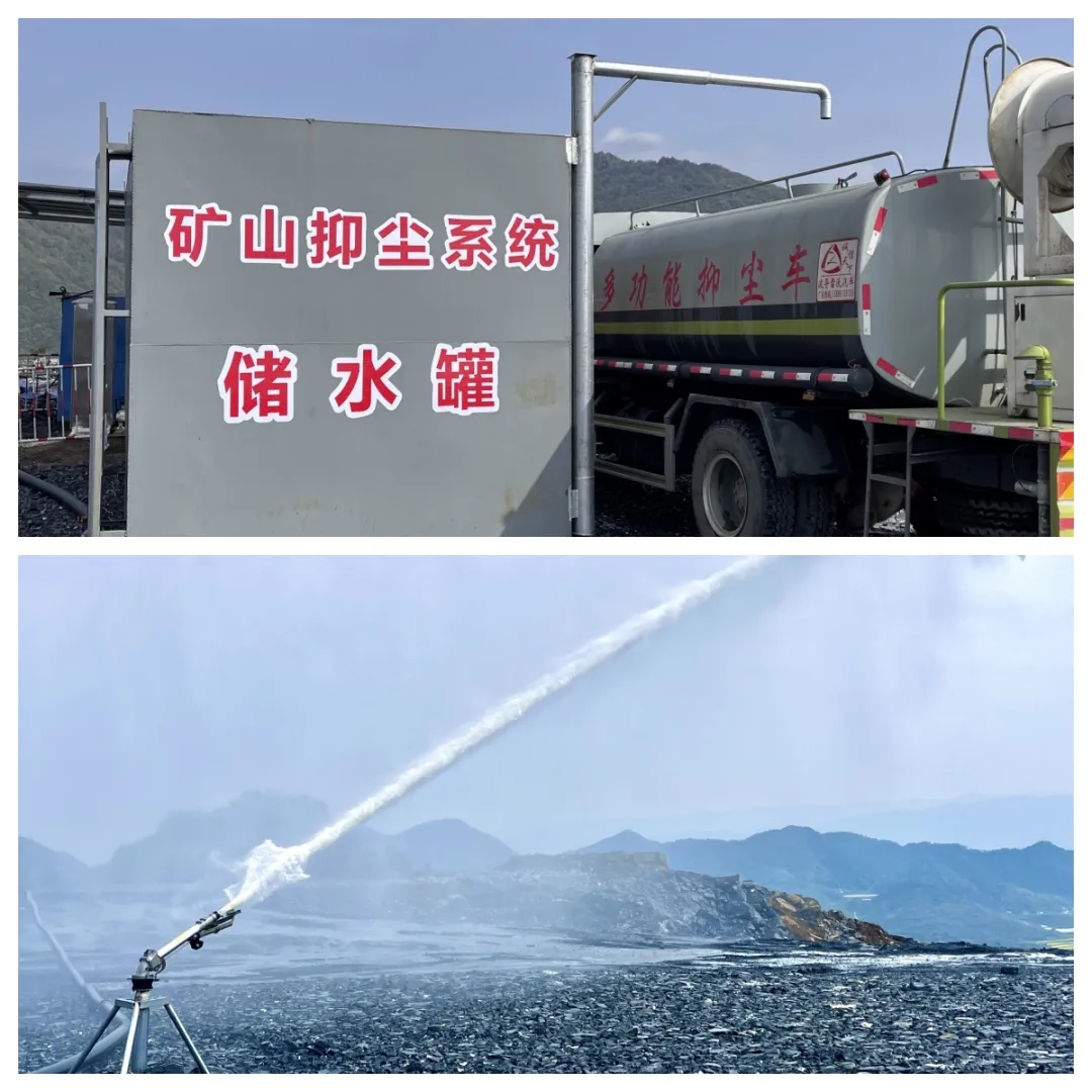 5G智能化抑塵系統(tǒng),有效抑制爆破揚塵。分公司引進的智能噴淋系統(tǒng)實現(xiàn)了對現(xiàn)場揚塵抑制的精細化、科學(xué)化、數(shù)字化的管理。在+315M平臺架設(shè)一個60m³的蓄水罐,可自動補水,主管道分出三條支管用于作業(yè)區(qū)噴淋,單槍覆蓋面積可達直徑150米,合理布置水槍位置,覆蓋率可達98%~100%,整個系統(tǒng)采用5G智能化控制,管理員可以通過手機實時掌握系統(tǒng)運行情況,管道可拆卸,隨平臺一同推進布置。同時配備一臺多功能抑塵車,隨時對運礦路面、采場平臺及挖機裝車點進行灑水降塵。從源頭嚴管揚塵污染,空氣環(huán)境質(zhì)量得到全面提升為實現(xiàn)礦山企業(yè)清潔生產(chǎn)打下堅實基礎(chǔ)。