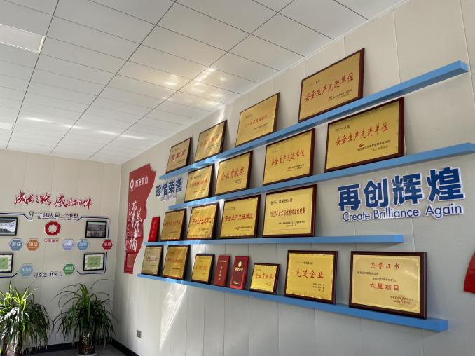 “中材國際安全環(huán)保先進集體”“中材礦山六星項目部”“優(yōu)秀項目經(jīng)理部”……南京礦山萊蕪分公司的會議室內(nèi),項目團隊用汗水打造了一面榮譽墻。