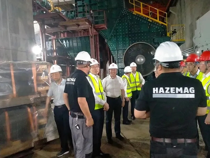 水泥人網(wǎng)注意到,無論是周育先董事長與哈茲馬克現(xiàn)場工作人員的交流以及合影照片其背景都是一款“重量級”設(shè)備,即哈茲馬克初級反擊式破碎機(jī) HPI2530。