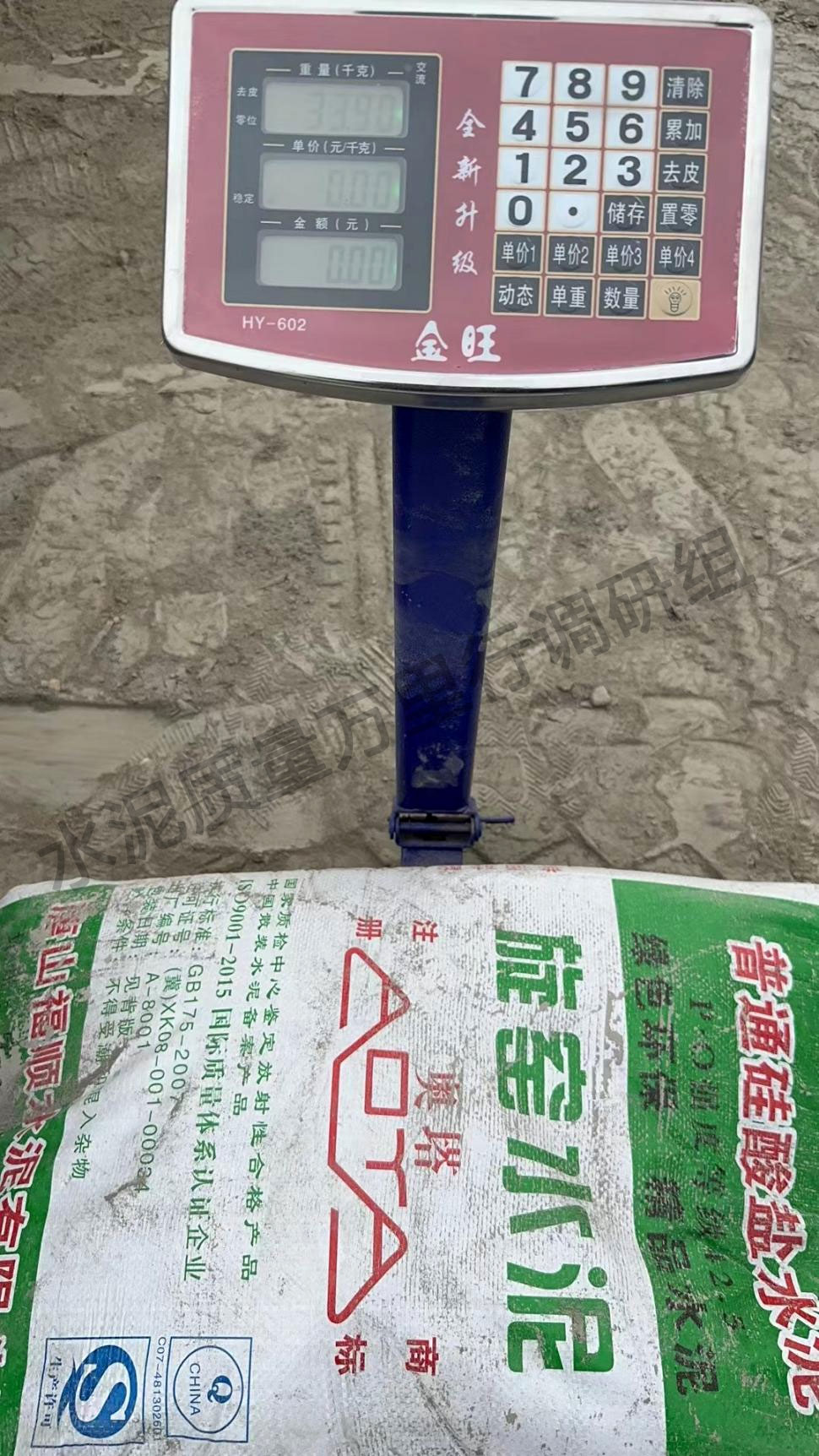 標(biāo)稱生產(chǎn)企業(yè)為唐山冀龍水泥的“喬潤(rùn)”牌PSA32.5(50kg)產(chǎn)品,實(shí)際稱重為35.35kg。
