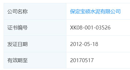 標(biāo)稱銷(xiāo)售商為唐山宏盛水泥經(jīng)貿(mào)有限公司的“銳”牌P.O42.5水泥,許可證編號(hào):XK08-001-03526。據(jù)查詢,該許可證企業(yè)主體為保定寶碩水泥有限公司,發(fā)證日期2012年5月18日,有效期至2017年5月17日。在該批次產(chǎn)品包裝上未見(jiàn)標(biāo)稱生產(chǎn)企業(yè)名稱。