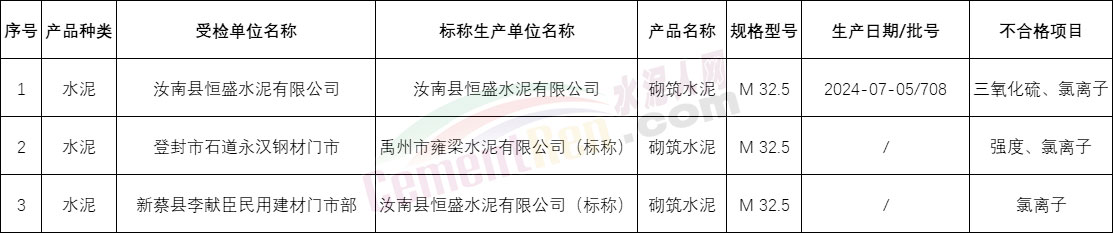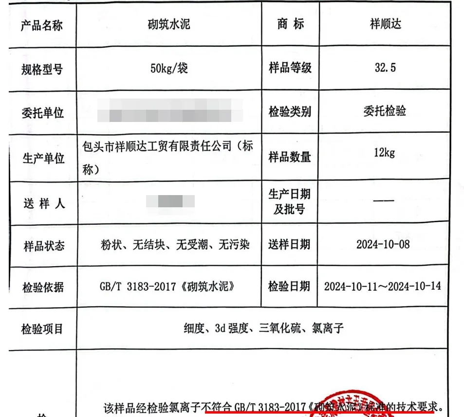 內(nèi)蒙古包頭市兩批次水泥氯離子不合格