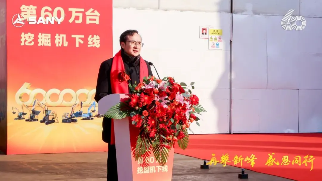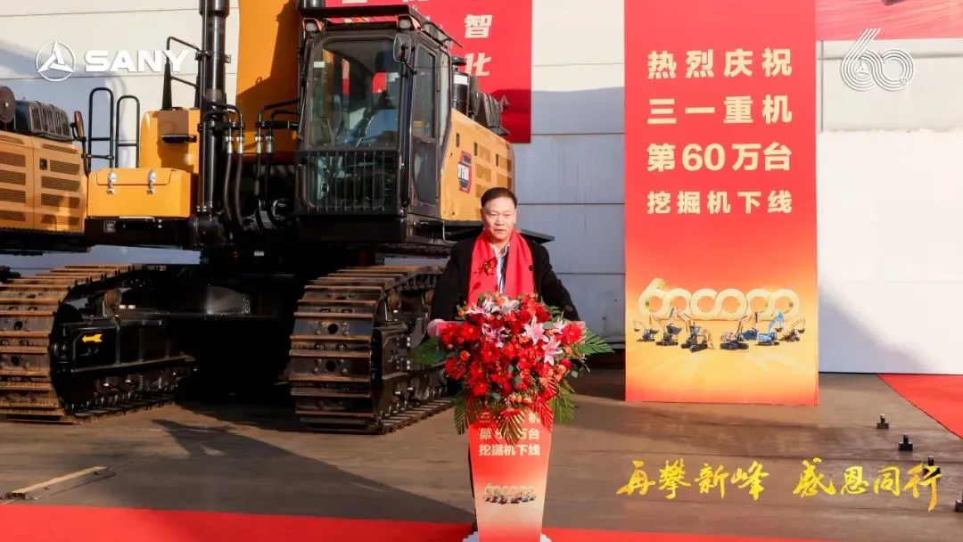 三一集團(tuán)高級(jí)副總裁、三一重機(jī)總經(jīng)理王政先生在致辭中表示:“寒冬難掩喜悅,見(jiàn)證三一挖機(jī)第60萬(wàn)臺(tái)下線(xiàn)盛事。三一自1986年起,以“三個(gè)一流”為愿景,秉持“品質(zhì)改變世界”使命,從湖南走向全球。這第60萬(wàn)臺(tái),不僅銘刻于三一的發(fā)展歷程,也創(chuàng)造了中國(guó)挖機(jī)歷史新的高度。