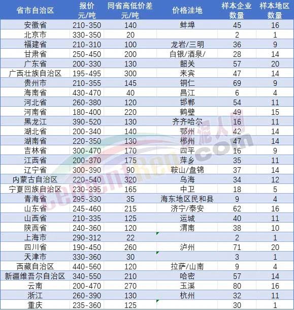 水泥人網(wǎng)信息中心最新調(diào)研數(shù)據(jù)顯示:全國31個(gè)省市1070余家企業(yè)中,廣西來賓、河南鶴壁、四川瀘州等區(qū)域水泥報(bào)價(jià)已跌破200元/噸。寧夏銀川批發(fā)價(jià)下探至150-170元/噸,成為價(jià)格“深坑”。多區(qū)域價(jià)格撕裂加?。簭V西壯族自治區(qū)內(nèi)價(jià)差高達(dá)300元/噸,內(nèi)蒙古自治區(qū)內(nèi)價(jià)差320元/噸。水泥核心消費(fèi)市場之一的華東地區(qū)竟成了低價(jià)“重災(zāi)區(qū)”:安徽蚌埠210元/噸、福建龍巖210元/噸、浙江杭州260元/噸。