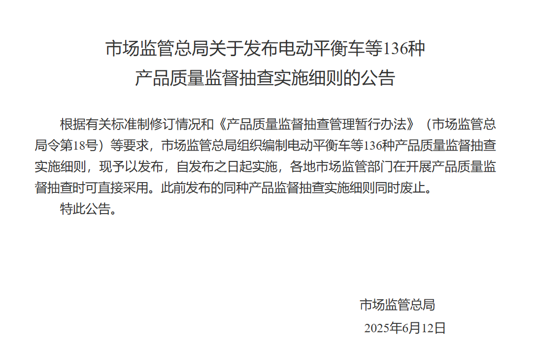 近日,市場(chǎng)監(jiān)管總局全面開展2025年產(chǎn)品質(zhì)量國家監(jiān)督抽查工作,將對(duì)164種產(chǎn)品開展國家監(jiān)督抽查,在生產(chǎn)、流通、平臺(tái)廣泛抽取樣品,共計(jì)1.6萬余批次。市場(chǎng)監(jiān)管總局將全面、準(zhǔn)確、及時(shí)發(fā)布抽查結(jié)果,曝光典型違法案例,科學(xué)引領(lǐng)消費(fèi),切實(shí)發(fā)揮產(chǎn)品質(zhì)量國家監(jiān)督抽查的利劍作用,維護(hù)人民群眾人身健康與財(cái)產(chǎn)安全。